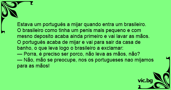 O português acaba de mijar e vai para sair da casa de banho, o que leva logo o brasileiro a exclamar: