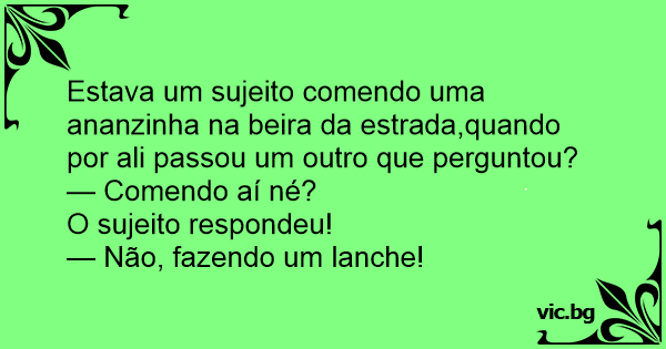 Estava um sujeito comendo uma ananzinha na beira da estrada,quando por ali passou um outro que perguntou?