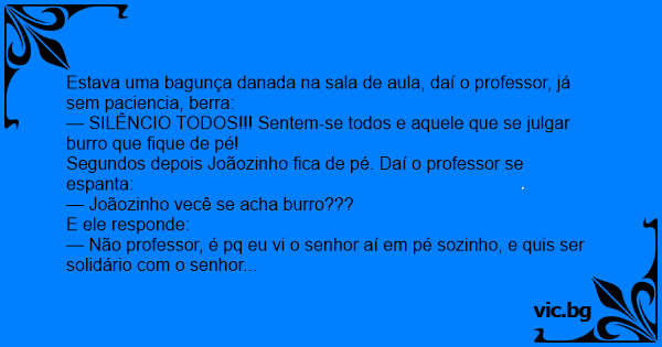 Estava uma bagunça danada na sala de aula, daí o professor, já sem paciencia, berra: