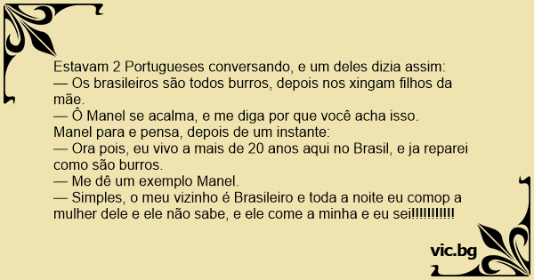 — Ora pois, eu vivo a mais de 20 anos aqui no Brasil, e ja reparei como são burros.