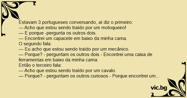 Estavam 3 portugueses conversando, aí diz o primeiro: