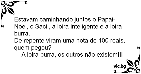 Estavam caminhando juntos o Papai-Noel, o Saci , a loira inteligente e a loira burra.