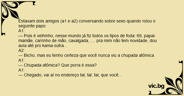 Estavam dois amigos (a1 e a2) conversando sobre sеxо quando rolou o seguinte papo: