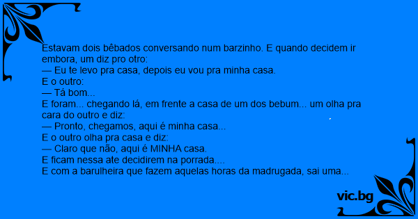 E foram... chegando lá, em frente a casa de um dos bebum... um olha pra cara do outro e diz: