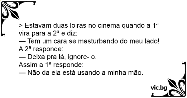 > Estavam duas loiras no cinema quando a 1ª vira para a 2ª e diz: