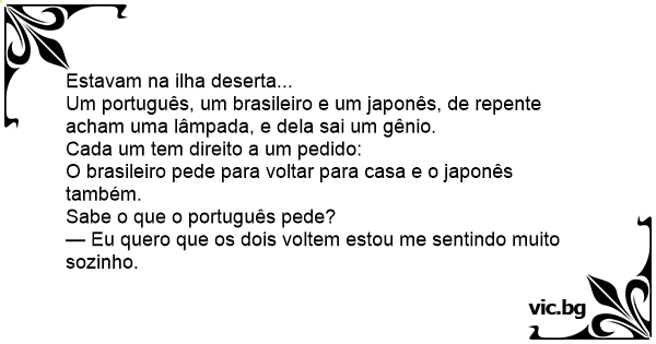 Um português, um brasileiro e um japonês, de repente acham uma lâmpada, e dela sai um gênio.