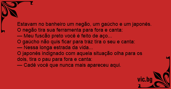 Estavam no banheiro um negão, um gaúcho e um japonês.