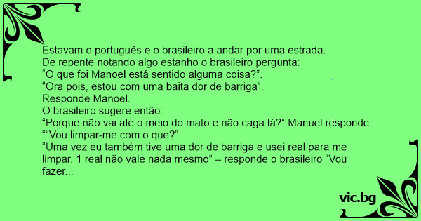 Estavam o português e o brasileiro a andar por uma estrada.