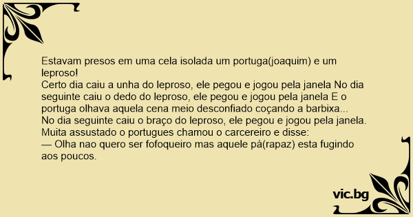 Estavam presos em uma cela isolada um portuga(joaquim) e um leproso!