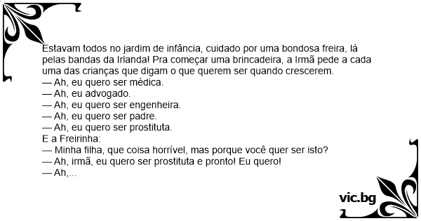 — Ah, irmã, eu quero ser prostituta e pronto! Eu quero!