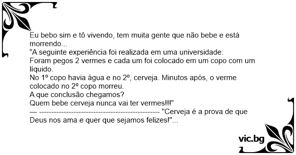 Quem bebe cerveja nunca vai ter vermes!!!"