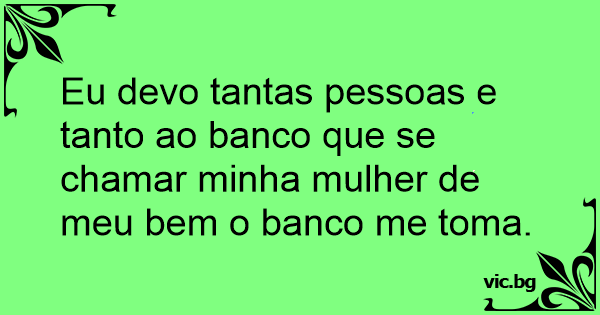 Eu devo tantas pessoas e tanto ao banco que se chamar minha mulher de meu bem o banco me toma.