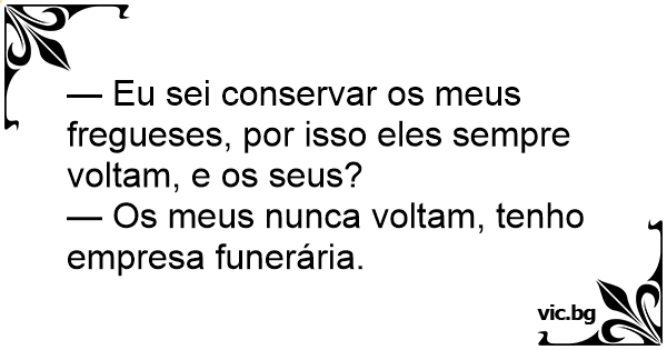 — Os meus nunca voltam, tenho empresa funerária.