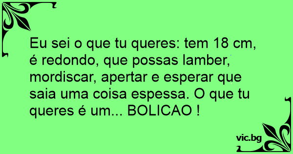 Eu sei o que tu queres: tem 18 cm, é redondo, que possas lamber, mordiscar, apertar e esperar que saia uma coisa espessa. O que tu queres é um... BOLICAO !