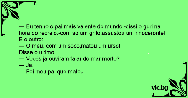 — Eu tenho o pai mais valente do mundo!-dissi o guri na hоrа do recreio.-com só um grito,assustou um rinoceronte!
