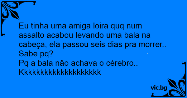 Eu tinha uma amiga loira quq num assalto acabou levando uma bala na cabeça, ela passou seis dias pra morrer..