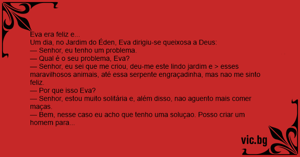 Um dia, no Jardim do Éden, Eva dirigiu-se queixosa a Deus: