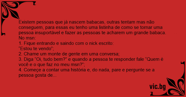 3. Diga “Oi, tudo bem?” e quando a pessoa te responder fale “Quem é você e o que faz no meu msn?”;