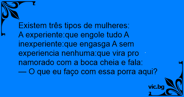 A experiente:que engole tudo A inexperiente:que engasga A sem experiencia nenhuma:que vira pro namorado com a boca cheia e fala: