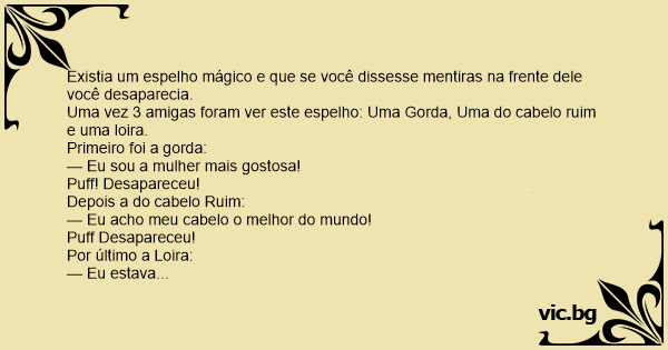 Uma vez 3 amigas foram ver este espelho: Uma Gorda, Uma do cabelo ruim e uma loira.
