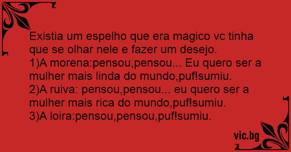 Existia um espelho que era magico vc tinha que se olhar nele e fazer um desejo.