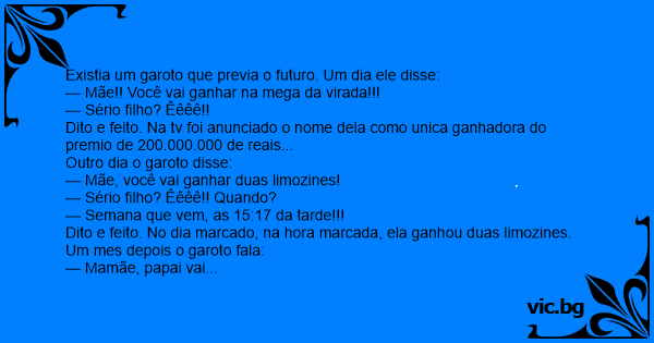 Existia um garoto que previa o futuro. Um dia ele disse: