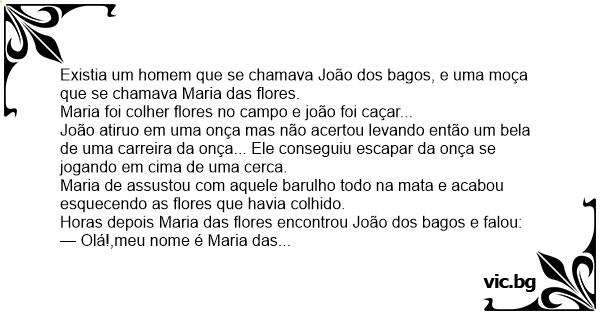 Existia um homem que se chamava João dos bagos, e uma moça que se chamava Maria das flores.