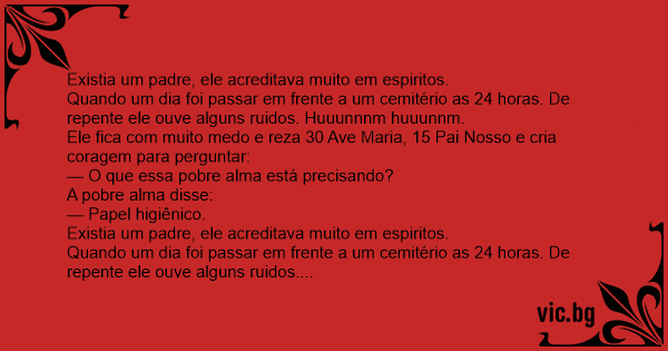 Quando um dia foi passar em frente a um cemitério as 24 horas. De repente ele ouve alguns ruidos. Huuunnnm huuunnm.