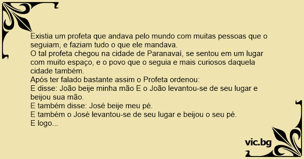 Existia um profeta que andava pelo mundo com muitas pessoas que o seguiam, e faziam tudo o que ele mandava.