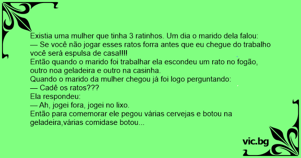 Existia uma mulher que tinha 3 ratinhos. Um dia o marido dela falou: