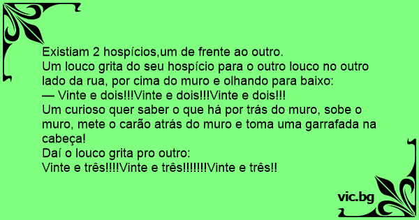 Um louco grita do seu hospício para o outro louco no outro lado da rua, por cima do muro e olhando para baixo: