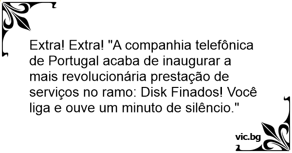 Extra! Extra! "A companhia telefônica de Portugal acaba de inaugurar a mais revolucionária prestação de serviços no ramo: Disk Finados! Você liga e ouve um minuto de silêncio."