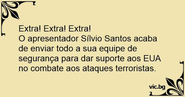 O apresentador Sílvio Santos acaba de enviar todo a sua equipe de segurança para dar suporte aos EUA no combate aos ataques terroristas.