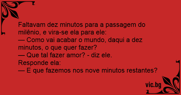 — Como vai acabar o mundo, daqui a dez minutos, o que quer fazer?