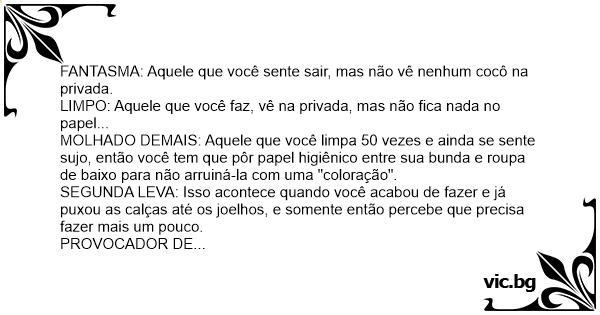 LIMPO: Aquele que você faz, vê na privada, mas não fiса nada no papel...