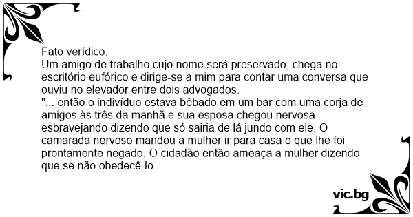 Um amigo de trabalho,cujo nome será preservado, chega no escritório eufórico e dirige-se a mim para contar uma conversa que ouviu no elevador entre dois advogados.