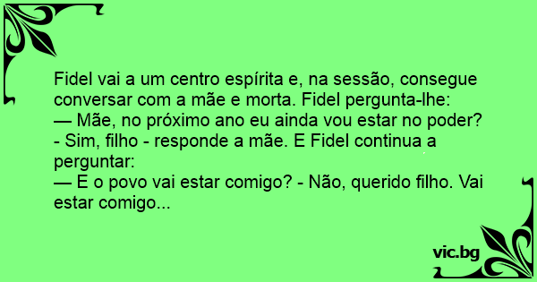 Fidel vai a um centro espírita e, na sessão, consegue conversar com a mãe e morta. Fidel pergunta-lhe:
