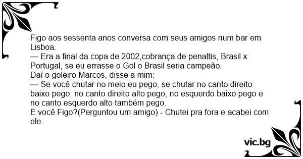 E você Figo?(Perguntou um amigo) - Chutei pra fora e acabei com ele.