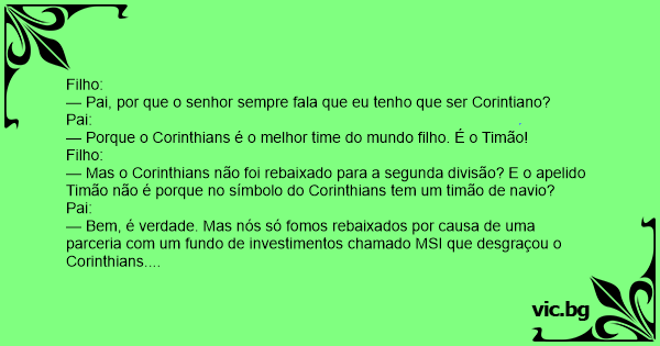 — Pai, por que o senhor sempre fala que eu tenho que ser Corintiano?