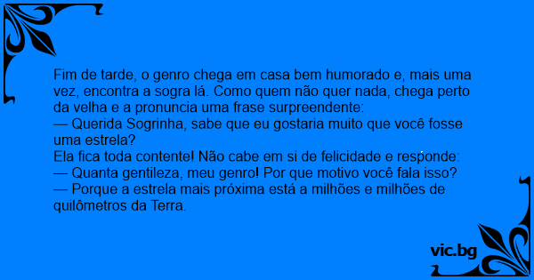 — Querida Sogrinha, sabe que eu gostaria muito que você fosse uma estrela?