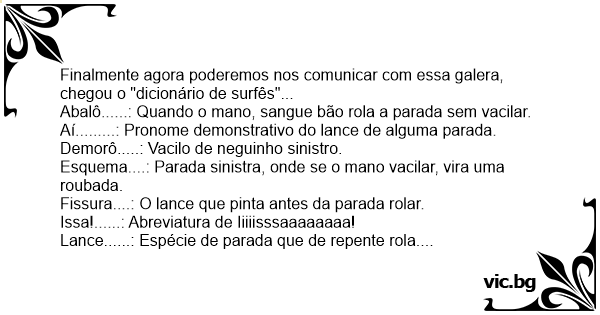 Finalmente agora poderemos nos comunicar com essa galera, chegou o "dicionário de surfês"...