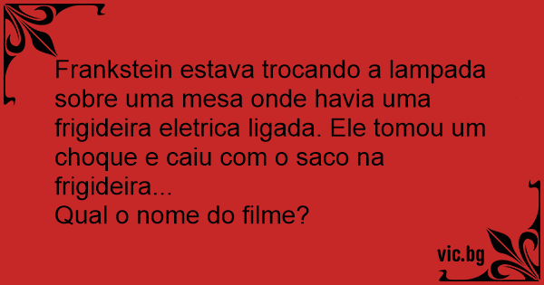 Frankstein estava trocando a lampada sobre uma mesa onde havia uma frigideira eletrica ligada. Ele tomou um choque e caiu com o saco na frigideira...