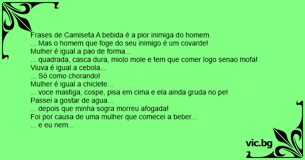 Frases de Camiseta A bebida é a pior inimiga do homem.