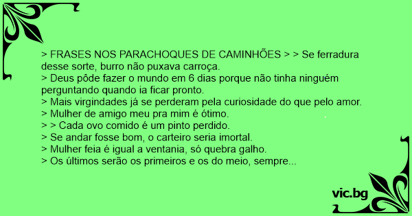 > FRASES NOS PARACHOQUES DE CAMINHÕES > > Se ferradura desse sorte, вurrо não puxava carroça.