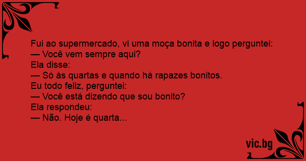 Fui ao supermercado, vi uma moça bonita e logo perguntei: