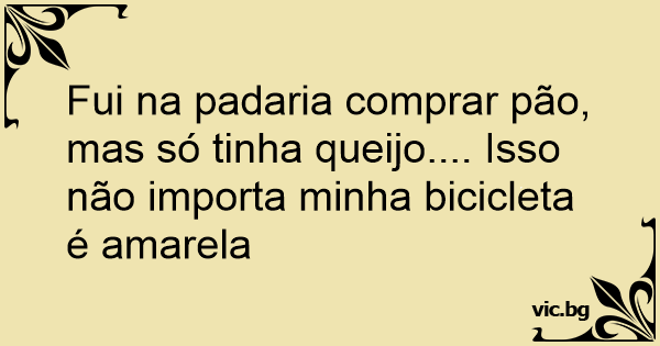 Fui na padaria comprar pão, mas só tinha queijo.... Isso não importa minha bicicleta é amarela