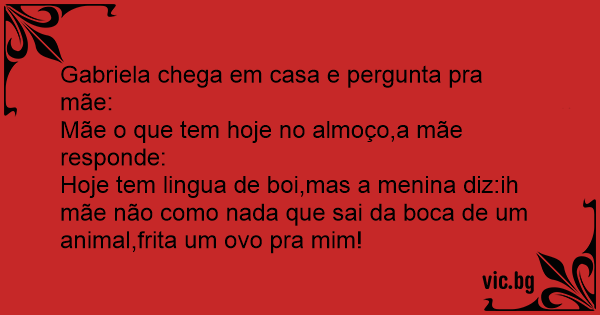 Hoje tem lingua de boi,mas a menina diz:ih mãe não como nada que sai da boca de um animal,frita um ovo pra mim!