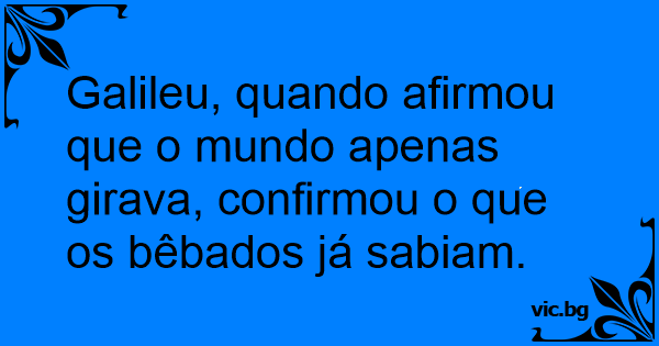 Galileu, quando afirmou que o mundo apenas girava, confirmou o que os bêbados já sabiam.