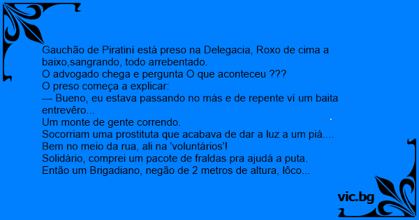 Gauchão de Piratiní está preso na Delegacia, Roxo de cima a baixo,sangrando, todo arrebentado.