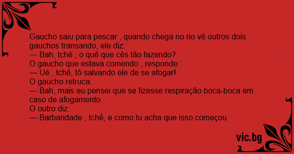 Gaucho saiu para pescar , quando chega no rio vê outros dois gauchos transando, ele diz: